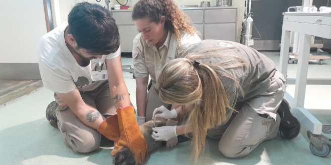 Rápidamente se hizo presente personal de la Fundación Temaiken para el traslado, resguardo, recuperación y posterior del lobo marino de muy corta edad.