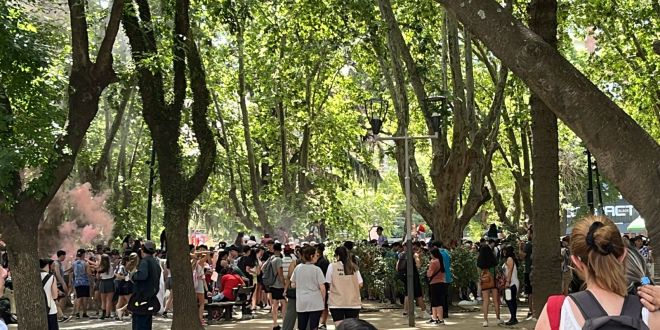 El epicentro del encuentro es  en la Plaza Conesa pero muchos estudiantes marchan en caravana desde distintos puntos del distrito.
