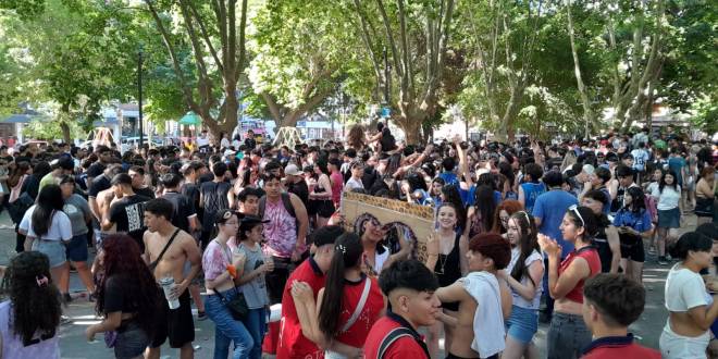 Tres personas fueron detenidas en la Plaza Conesa donde gran cantidad de estudiantes de sexto año realizan la caravana UUD (Último último día) para festejar el egreso de la secundaria.