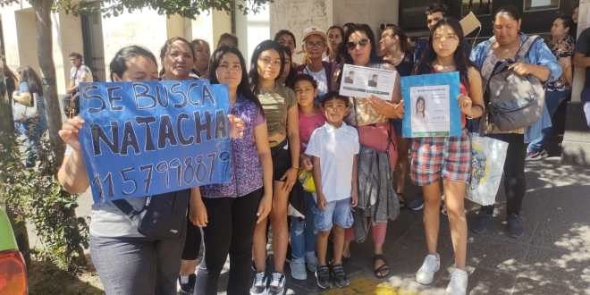 Esta mañana se concentraron frente a la sede del Fuero Penal de Yrigoyen y Videla para difundir el caso y pedir que se active la búsqueda de los menores.