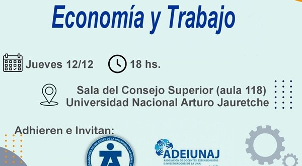 Habrá integrantes del Foro Economía y Trabajo , docentes de la carrera de Economía de la UNAJ Lic. Norberto Crovetto y el Lic. Juan Costa, autoridades del Instituto de Cs. Sociales y Administración, Dr. Sergio De Piero, el coordinador de la Carrera de Economía Lic. Daniel Novak, representantes de ADEIUNAJ Lic. Esteban Secondi, el Secretario General de ATUNAJ Cro. David Ruiz, coordinará la presentación el Lic. Roberto Berrozpe, docente UNAJ.