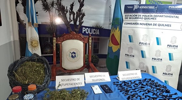 Durante el allanamiento, las fuerzas de seguridad secuestraron 78 envoltorios con clorhidrato de cocaína (18,1 gramos), 800 gramos de marihuana, 6 frascos y 2 teléfonos celulares.