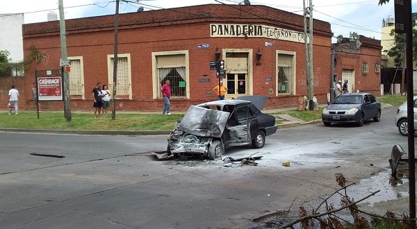 Como consecuencia del violento impacto el auto resultó seriamente dañado.