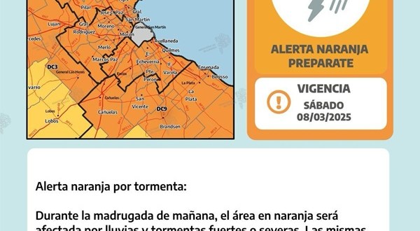 El Servicio Meteorológico Nacional emitió un «Alerta Naranja» para la madrugada del sábado.