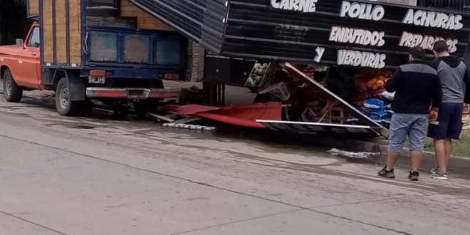 Pero un auto rozó la camioneta estacionada y por el golpe, se vino el techo abajo provocando importantes daños en la vereda.