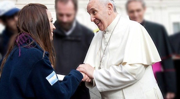 El posteo fue acompañado por imágenes de un encuentro que compartió con el Sumo Pontífice en noviembre de 2014 cuando Mendoza era diputada nacional. Fue en el marco de una audiencia con el entonces titular de la SEDRONAR, Juan Carlos Molina junto a un grupo de jóvenes que se recuperaban de sus adicciones.