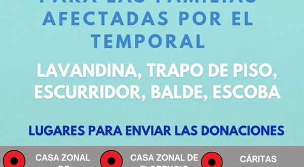 Cáritas Diocesana y la Vicaría de Educación de la Diócesis de Quilmes animan la colecta de artículos de limpieza para las familias afectadas por el temporal.