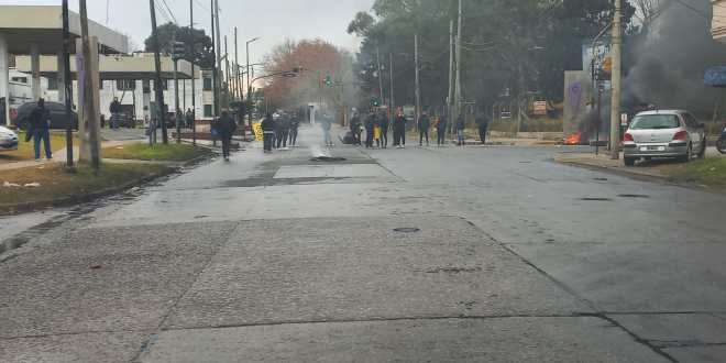 Los choferes se manifiestan con un piquete en 12 de Octubre y Mosconi, frente a la terminal de la empresa.