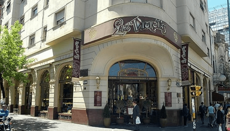 En la esquina de Rivadavia y Medrano, Las Violetas abrió en 1884 como confitería y conserva su decoración art nouveau original. Los vitrales con motivos florales, los espejos biselados y las lámparas de bronce crean un ambiente único en la ciudad.