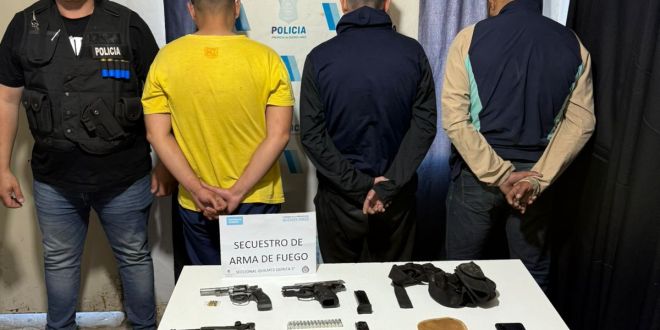 Al llegar al lugar y ver a la Policía, los tres hombres intentaron huir a pie e ingresaron a una vivienda, donde finalmente fueron reducidos y aprehendidos. Durante el rastrillaje en el interior del inmueble, se incautaron tres armas de fuego: una pistola Bersa Thunder Ultra Compact 9mm con numeración suprimida y 15 proyectiles; otra pistola calibre 22 sin número de serie visible, y un revólver marca Doberman calibre 22.
