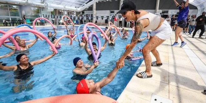 «Arrancaron las clases de AquaGym en el nuevo Natatorio Municipal de San Francisco Solano y estuvimos junto a las vecinas que inauguraron la pileta. Ver en funcionamiento este espacio que construimos con fondos propios, lleno de vida, nos confirma que cada esfuerzo vale la pena. Porque cumplir un compromiso de gestión también es esto, crear lugares que cuidan la salud, fortalecen la comunidad y abren oportunidades para nuestros barrios», señaló Mayra, que acompañada de la secretaria de Desarrollo Urbano y Obra Pública, Ceci Soler y su par de Educación, Culturas y Deportes, Joaquín Desmery, tras la bendición de las instalaciones, observaron la muestra deportiva de 10 nadadores quilmeños federados que representarán a la ciudad en los Juegos Bonaerenses 2025 y una clase de AquaGym.