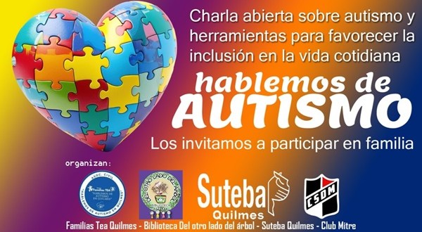 El encuentro es abierto y gratuito. Convocan: Familias TEA (de la Asociación Civil “Hablemos de autismo en Quilmes”), SUTEBA Quilmes, Biblioteca “Del otro lado del árbol” (Ezpeleta) y Club Mitre.