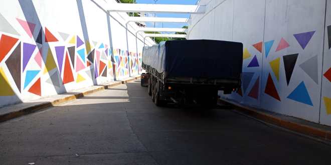 Un camión de gran porte, cargadísimo y muy pesado, sufrió una falla mecánica esta mañana en el paso bajo nivel de la avenida Espora, en Bernal, y generó un verdadero caos vehicular.