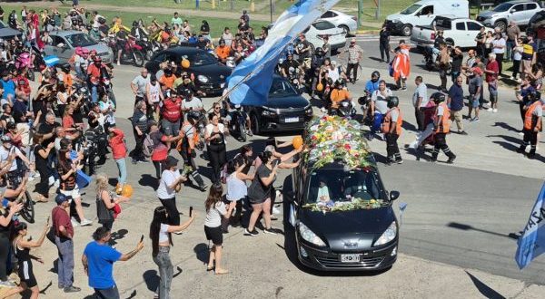 Durante el recorrido, conformado por una innumerable cantidad de vehículos -entre autos, motos y hasta bicicletas-, los y las asistentes flamearon banderas argentinas y naranjas (color representativo del distrito), exhibieron carteles y entonaron característicos cánticos en su memoria.
