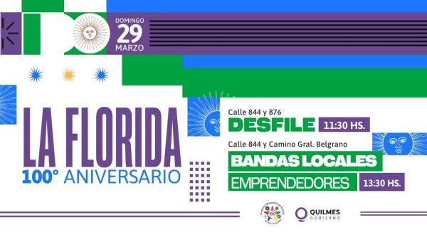 El Municipio de Quilmes invita a las y los vecinos a los festejos por el 100º aniversario de Villa La Florida, que se llevarán adelante el domingo 29, con el tradicional desfile de instituciones locales, feria de emprendedores y stands gastronómicos, y que tendrá una nueva edición del festival Somos Quilmes, con shows artísticos y música en vivo, que contará con el cierre a pura cumbia con La Sonora Master.