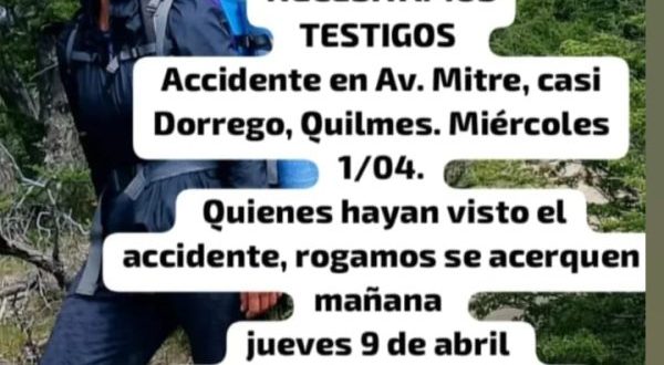 En paralelo, también se realiza un pedido de testigos del accidente. Aquellas personas que hayan visto lo ocurrido pueden acercarse a la Comisaría Primera de Quilmes, ubicada en Alem y Sarmiento, entre las 6 y las 18 horas.